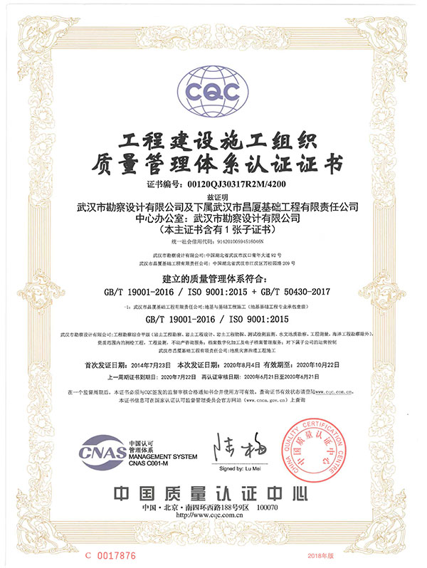 質量管理體系認證證書
