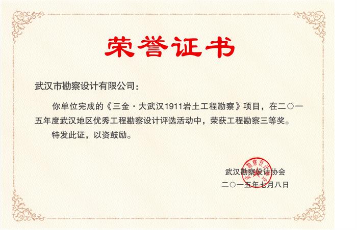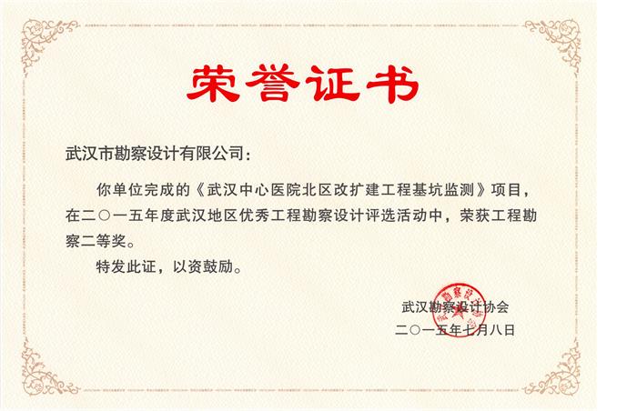 熱烈祝賀我公司在2015年度武漢市優(yōu)秀工程勘察設(shè)計(jì)獎評選中,榮獲市優(yōu)秀工程勘察設(shè)計(jì)獎項(xiàng)八項(xiàng)。