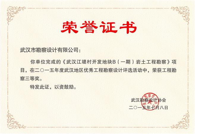 武漢江堤村開發(fā)地塊B(一期)巖土工程勘察(綜合部、技術(shù)質(zhì)量部)